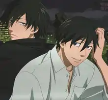 Hei's character is a balance between human and Contractor. Originally considered a cold-hearted Contractor, the revelation that Hei is a human with supernatural powers inherited from his sister makes him a "third option" in the narrative.[41] Maxibe Gee of the University of York called the character a "posthuman noir" protagonist similar to Rick Deckard in Do Androids Dream of Electric Sheep?, Motoko Kusanagi in Ghost in the Shell and Vincent Freeman in Gattaca (1997) due to their shared backgrounds and cruelty. Gee noted the similarities in how their actions demonstrate moral ambiguity and personal desires. In Hei's case, Gee focused on his relationship with the humans known as dolls: "identities which are formed by encompassing others, embracing the team of both humans and posthumans". Hei and Yin, strangers in a strange land, are similar to foreigners. Hei's morality is more varied than the Dolls or the other Contractors. His character, a noir protagonist, is betrayed in the second episode by a femme fatale who is a Doll rather than a human woman who is attracted to him. Hei's characterization and growth are compared with Jerold J. Abrams' commentary on the handling of noir; Hei "is defined by the journey he takes to understand his dual human/posthuman nature and his inability to come to terms with what he is."[42] According to Gee, Hei's dual personality, the ruthless assassin and the shy Li, is distinguished by his clothing; Hei is masked and wears a black coat, and Li is often dressed in white. The character's "persona fits into traditional hardboiled rational masculine tropes while the Li persona is characterized by the more stereotypically feminine attributes of empathy and intuition". He stated that Although Hei is a dark character, his humanity is revealed by his interactions with others such as Yin. Yin's humanity in the first series' finale when Hei nearly disappears into Heaven's Gate saves Hei's life and cements their bond. Instead of a happy ending, however, the original video animations and the sequel Gemini of the Meteor strike a noir note.[42]