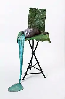 Bucher became more interested in the body's relationship to space in her later work. In the mid-1970s she began experimenting with a new technique, in which she soaked gauze sheets in latex rubber, and used them to cast the interior surfaces of the rooms of her grandparents' house in Winterthur, Switzerland. These were then pulled off in sheets to create thin, skin-like casts of the space;[7] she referred to these casts as "Skinnings."[3] In 2017, she was selected to be part of the main exhibition at the 57th Venice Biennale, VIVA ARTE VIVA.[8]