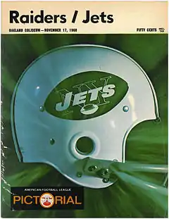 ![]() Program cover from the Jets-Raiders game from November 17, 1968 | |||||||||||||||||||