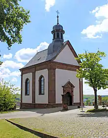The Holy Cross Chapel (German: Heilig-Kreuz-Kapelle) also known as the Gnadenkapelle is located on the Han ("Hain") above Blieskastel in Saarland. As a place of pilgrimage, it belongs to the Blieskastel Monastery, built in 1929, and is visited by around 80,000 pilgrims annually. The chapel was built as a place of veneration for a relic of the True Cross, but today it is closely related to the 14th century Pietà "Our Lady with the Arrows". In the list of monuments of the Saarland, the chapel is listed as an individual monument within the ensemble of the monastery complex "Auf dem Han".