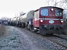 For the operation of the Chemiepark Oberbuch, the locomotive by the Chemiepark hauled freight wagons to Oberbruch station, where they were taken over by a DB locomotive operated by DB Schenker Rail (now DB Cargo).