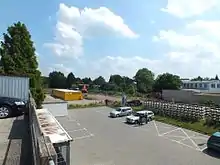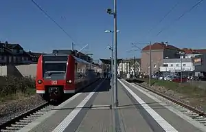 Heinsberg (Rheinland) station is a terminus in Heinsberg in the German state of North Rhine-Westphalia and is at the end of the Lindern–Heinsberg railway. The entrance building and the freight sheds were successively demolished in 1997 after the closure of the passenger service in 1980, the end of freight traffic to Heinsberg in 1994 and the closure of the line between Oberbruch and Heinsberg in 1997. In preparation for the reactivation of passenger services on 15 December 2013, a new island platform was erected to the east of the site of the demolished entrance building.