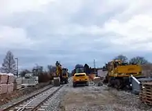 In June 2012, the old railway tracks were removed at Heinsberg station, the remains of the loading ramp and the remaining foundations of the freight-handling facility were demolished and a new level area was created. The new railway tracks, platform and car park were built on the levelled area.
