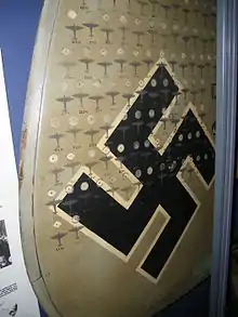Schnaufer's Messerschmitt Bf 110 G-4/U 8 was brought to England after the war. The aircraft was displayed in London's Hyde Park.[109] The port-side vertical stabiliser of this twin tailed aircraft, tallying all his victories, is preserved at the Imperial War Museum in London.[110] A fin from another Bf 110 flown by Schnaufer is at the Australian War Memorial in Canberra. The street "Heinz-Schnaufer-Straße" in Calw is named after him.[111]