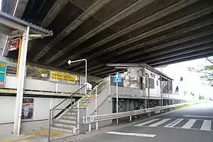 The station consists of two side platforms serving two tracks at grade under a road overpass. There is no station building, but both platforms have shelters. A staffed ticket booth is located on one of the platforms. Access to the other side platform is by means of a footbridge.[2][3]