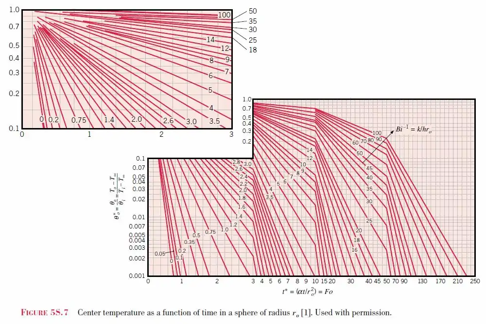 The Heisler chart for a sphere is based on the first term in the exact Fourier series solution: