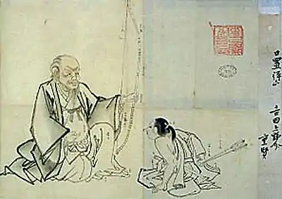 The founder of Heki-ryū Insai-branch, Yoshida Genpachirō Shigeuji, wrote about Heki Danjō as a manifestation of the god of war Hachiman. History tells us little of his life. Heki Danjō was born in Yamato, became a famed archer in a battle, taught kyūjutsu and shortly before his death, he became a monk at Mount Kōya.[3]
