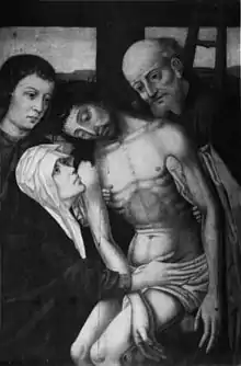 Early in the 1930s, after the 1931 death of her mother, she hired John Russell Pope to expand of the Frick Reference Library into two adjacent townhouses. Pope built abundant shelving and windows, and a medieval-style office for Helen. Time magazine said of the building, it was "instantly recognized at one of the most important art libraries in the world."[20] It would grow into a records library with over 300,000 books and exhibition catalogues, extensive auction and provenance records, and 1.2 million images of art from the 4th to the 20th centuries; it contains the only records for many pieces of art lost or destroyed during both World Wars.[23] Between 1922 and 1967, Helen commissioned 57,000 large format negatives. In Italy church interiors were lit, making it possible to photograph centuries-old frescoes and altarpieces, such as the now-lost frescoes by Giovanni Baronzio. More than 8,000 photographs are attributed to Italian photographer Mario Sansoni, who worked for Helen for many years.[18]