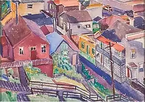 Forbes lived and worked throughout Europe and the United States, she traveled often but home was always California. From 1925 until 1926 she travelled to the mining town of Guanajuato City, Mexico for artistic inspiration.[5] From 1930 until 1932 Forbes traveled for short periods of time to Death Valley, in order to finding inspiration for her scenes of the West.[2] She also traveled to Virginia City, Nevada, and painted landscapes and scenery.[6] Her painting, Piute Indian was purchased by Mills College.[2] In 1931 she taught in the Art Department of the University of California, Berkeley.[2]