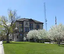 Helena's early commercial district was located along State, Edwards, and Broadway Streets, but fires destroyed much of this area in 1869, 1872, and 1874. Much of what was built afterwards was built in the Western Commercial style, with splendid brickwork and simple lines. The Beaux Arts Parchen Drug Building, Colwell Building, and the Penn-Block Bristol Hotel were French Renaissance. The Denver Block and Sands Brothers Dry Goods were Romanesque Revival.[3] By the mid-1880s at least 18 architectural firms had been established in Helena or called in from back East. Several of these architects were part of or influenced by the Chicago school of architecture. This influence is seen in the Atlas Building, Securities Building, Power Block, and the Lewis and Clark County Courthouse.[5]