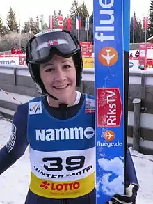 Helena Olsson Smeby (born 15 November 1983) is a Norwegian ski jumper. She was born in Torsby, Sweden, and lives in Trondheim, Norway, where she represents the club Byåsen IL. She competed at the FIS Nordic World Ski Championships 2009 in Liberec, where she placed sixteenth in the women's individual normal hill[1] She competes at the 2014 Winter Olympics in Sochi, in the ladies normal hill.[2]