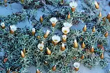This plant is always found growing near the sea.[3] It is found growing on sand cliffs, sand dunes and sandy slopes and flats along the southwest coast of South Africa, from Blouberg to the north of Table Bay and Stillbaai. It sometimes grows up between neighboring bushes.[4]