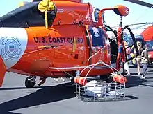 A helicopter rescue basket is a basket suspended below a helicopter in order to rescue people from a fire or other disaster site.