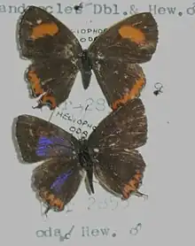Heliophorus oda, the eastern blue sapphire, is a small butterfly found in India that belongs to the lycaenids or blues family.