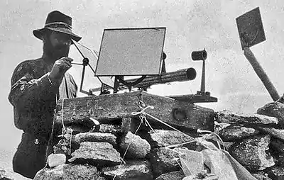 Heliotropes were used in surveys from Gauss's survey in Germany in 1821 through the late 1980s, when GPS measurements replaced the use of the heliotrope in long distance surveys. Colonel Sir George Everest introduced the use of heliotropes into the Great Trigonometric Survey in India around 1831,[3] and the US Coast and Geographic Survey used heliotropes to survey the United States. The Indian specification for heliotropes was updated in 1981,[4] and the American military specification for heliotropes (MIL-H-20194E) was retired on 8 December 1995.[5]
