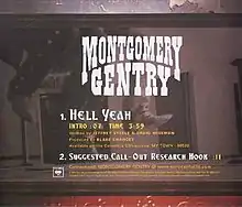 "Hell Yeah" is a song written by Jeffrey Steele and Craig Wiseman and recorded by American country music duo Montgomery Gentry. It was released in July 2003 as the third and final single from the duo's album My Town. The song peaked at number 4 on the US Billboard Hot Country Singles & Tracks chart and reached number 45 on the Billboard Hot 100.