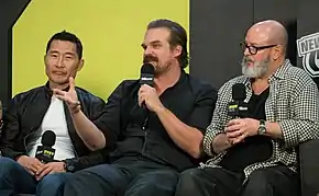 In September 2017, Daniel Dae Kim was cast to replace Skrein in the role of Daimio.[38] Kim has praised Skrein for dropping the role, stating, "I applaud the producers and, in particular, Ed Skrein for championing the notion that Asian characters should be played by Asian or Asian American actors."[39] The two later met and became acquainted, with Kim saying, "Thanks for the opportunity to get to know each other in person. Grateful to now call you 'friend'."[40] In November 2018, it was revealed that Thomas Haden Church had a role in the film as vigilante Lobster Johnson.[41] The same month, it was also announced that Stephen Graham and Douglas Tait portray the fairy Gruagach, with Graham as the voice and Tait providing the in-camera performance.[42] Doug Jones (who had played Abe Sapien in the del Toro films) was offered a cameo but was unable to participate due to commitments to Star Trek: Discovery.[43]