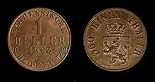 In the Electorate of Hesse, the silver groschen was divided into 12 hellers, so that the heller was equal to the Prussian pfennig. Dreiheller were copper 11⁄2 pfennig pieces that were minted in Saxe-Gotha.