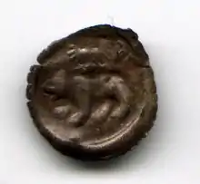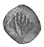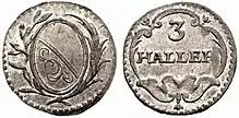 listen)), in Latin sources: denarius hallensis or hallensis denarius, took its name from the city of Hall am Kocher[3] (today Schwäbisch Hall).[4][5] Silver coins stamped on both sides (Häller Pfennige) were called Händelheller because they usually depicted a hand. A distinction was made between white, red and black hellers.