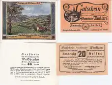 In Liechtenstein, emergency money was in circulation from 1919 to 1924. The denominations were based on the heller.