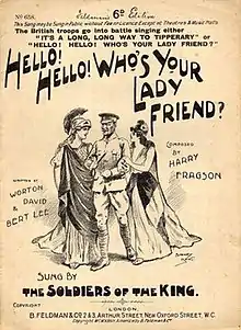 "Hello! Hello! Who's Your Lady Friend?" is an English music hall song from 1913, with music by Harry Fragson and words by Worton David and Bert Lee.