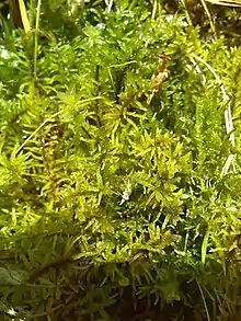 The habitat of Blandow's bogmoss is montane minerotrophic or "moderately rich" fens or mires, usually with calcareous groundwater, where it forms mats and small hummocks; sometimes it can be found under graminoids and shrubs at the edges of these aquatic features, or within them in small rivulets. Associated vascular plants include Agrostis idahoensis, Betula glandulosa, Salix geyeriana, Carex limosa, Eleocharis pauciflora, and Scheuchzeria palustris. Associated mosses include Aulacomnium palustre, Calligeron stramineum, Hamatocaulis vernicosus, Meesia triquetra, Tomenthypnum nitens, Philonotis fontana, Drepanocladus vernicosus, and Hypnum lindbergii. Fens with Scorpidium spp. or Drepanocladus revolvens, however, are too ion-rich, and not suitable habitat for H. blandowii.[3][6][8][9]