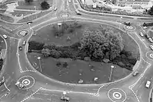 The initial plans for the New Town were drawn up by architect Geoffrey Jellicoe. His view of Hemel Hempstead, he said, was "not a city in a garden, but a city in a park." However, the plans were not well received by most locals. Revised, and less radical plans were drawn up, and the first developments proceeded despite local protests in July 1948. The first area to be developed was Adeyfield. At this time the plans for a revolutionary double roundabout at Moor End were first put forward, but in fact it was not until 1973 that the roundabout was opened as it was originally designed. (It was quickly christened 'The Magic Roundabout' by locals, echoing the name of the children's TV show.) The first houses erected as part of the New Town plan were in Longlands, Adeyfield, and went up in the spring of 1949. The first new residents moved into their new houses in February 1950.[28]