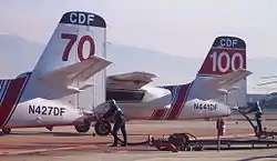Ryan Air Attack is a joint Air Attack / Helitack base operated by the California Department of Forestry and Fire Protection (Riverside Unit). It is one of 19 tanker bases strategically located throughout California. The base provides initial attack aircraft service to over 17,000 square miles (44,000 km2) of private, state, and federally owned lands. Up until 1998, Ryan was statistically the busiest air tanker base in the United States, delivering an average of 1.5 million gallons of retardant annually.[5] Currently two S-2 Trackers, an OV-10 and a UH-1H are stationed at the base. The base has served as the primary air attack base for many wildfires, including the Old Fire and Cedar Fire in 2003 and the Esperanza Fire in 2006.[8]