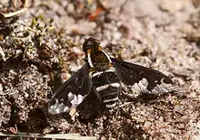 Hemipenthes is a large genus of flies belonging to the family Bombyliidae (bee-flies). There are many described species, distributed throughout the Holarctic realm. These are small to large robust flies with a body length of 5–14 mm. They can be distinguished from similar genera (Villa) by their wing venation.[1] A number of species formerly in this genus were moved to a separate genus, ins in 2020.[2]