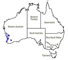 Woolly dragon mostly occurs to the north of Perth but is found between Busselton and the Murchison River, sometimes as far east as Yellowdine. It grows in sandy kwongan and woodland in the Geraldton Sandplains, Swan Coastal Plain, Avon Wheatbelt, Jarrah Forest and Mallee biogeographic regions.[2][3][7][8]