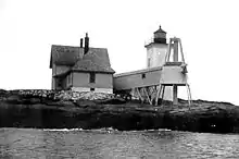 Hendricks Head Light is a lighthouse in Southport, Maine marking the west side of the mouth of the Sheepscot River.[2][3][4] The light station was established in 1829, and its present structures date to 1875. It was deactivated in 1933, but relit in 1951. The two-story wood keeper's house is now a private summer residence. The light is on continuously, showing white to the west and red to the east. It was listed on the National Register of Historic Places as Hendricks Head Light Station on November 20, 1987.[1]