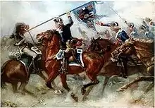 Soon after, Stengel served as a general of brigade in the Army of the North at the Battle of Valmy in September 1792. Still under the command of Charles Dumouriez, he fought at the Battle of Jemappes in November 1792.[2] Later that year, he led Dumouriez's advance guard in successful actions at Mechelen (Malines) and Voroux-les-Liers in the Austrian Netherlands. On 1 March 1793, he was defeated at Aldenhoven and the next day driven out of Aachen by the Allies. For this he was arrested and tried before a Revolutionary Tribunal. He was acquitted but retired from military service.[3]