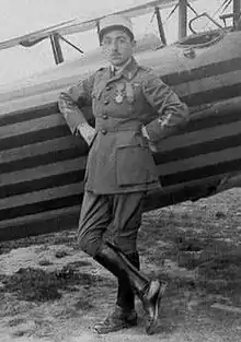 Hay de Slade came from a military family; his father was a naval officer who died in 1908.[2] Hay de Slade began his own military career as a cadet at Saint Cyr in 1913. He transferred to aviation on 13 May 1916, and received his pilot's certificate in August of that year. After further training, he was assigned to Escadrille Spa80 on 13 December 1916. It wasn't until his reassignment to Escadrille N86 and its Nieuport fighters, on 16 April 1917, that he began to succeed as an aerial warrior. On 20 May, he scored his first victory. He closed out 1917 as an ace; on 5 December, he scored his fifth victory. He would score six more times with Escadrille 86, with his last one coming on 21 July 1918.[1]