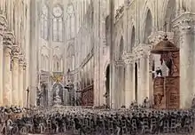 Monseigneur de Quélen, the Archbishop of Paris, asked Lacordaire to preach a Lenten series in 1835 at the Cathedral of Notre-Dame in Paris, as part of the Notre-Dame Lectures specially aimed at the catechesis of Christian youth, which had been inaugurated at the behest of his friend Ozanam. Lacordaire's first lecture took place on 8 March 1835, and was met with wide acclaim. The social event of its day, 6,000 attended. Because of this immediate success, he was asked to preach again the following year. According to Thomas Bokenkotter, Lacordaire's Notre Dame Conferences, "...proved to be one of the most dramatic events of nineteenth century church history."[7] Today the Lacordaire Notre-Dame Lectures, which mixed theology, philosophy and poetry, are still acclaimed as a sublime modern re-invigoration of traditional homiletics.