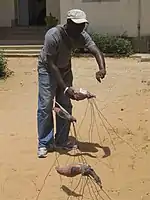 Amongst the ten contemporary artists of Senegal at the Dapper Museum in Paris in 2006, focusing on the creativity of a generation of Senegalese artists, Sagna set up an entire display of Mosquitoes and insect screens. The insects were made with enormous paws from galvanized steel wire, bottles of soda and celluloid for the wings.