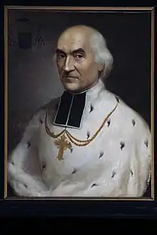 In November 1864 Bracq was elected bishop of Ghent in succession to Louis-Joseph Delebecque, who had died the previous month. He was consecrated on 1 May 1865. As bishop he founded the Sint-Lievenscollege in Ghent in 1865, as well as diocesan secondary schools in Ledeberg, Aalst and Ninove (1872), and opposed the semi-traditionalism taught at the Catholic University of Leuven by Casimir Ubaghs.[1] In 1866 he founded a diocesan weekly, De Godsdienstige Week van Vlaanderen. An Ultramontane by inclination, he attended the First Vatican Council,[2] promoted Peter's Pence, and supported the Papal Zouaves. Bracq took an active role in the social and political crisis known as the First School War, in opposition to the encroachments of the state on Catholic education. He died in Ghent on 17 June 1888.[1]