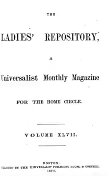 Toward the close of 1868, Bingham, by invitation of the agent of the Publishing House, came to Boston, and in the January 1869, became editor of the Ladies' Repository. During the five years that she conducted that magazine, she made for herself a strong literary record. To a wide and high range of thought, she added delicacy, warmth and graceful humor. Her work on that periodical was of the best quality throughout. She was too conscientious to slight any part of it. The aggregate of her editorial labor was large. She resorted to no devices to fill space and save honest labor.[4]