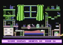 Henry's House is a platform game developed by Chris Murray for Atari 8-bit family and Commodore 64. The Commodore 64 version was published by English Software in 1984,[1] while the Atari 8-bit version from by Mastertronic followed in 1987.[2] The game, produced in the United Kingdom, is loosely based on Prince Henry of Wales who was then a baby. The working title of the game was Home Sweet Home.