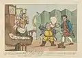 The Oxford Dictionary of National Biography describes his A Long Minuet as Danced at Bath as the most successful of his lifetime, using an "innovative story-telling" format that is considered a forerunner to the comic strip.[1] His caricatures were regularly reissued, even as he turned his attention to other subjects: he finished half of a commissioned set of 48 drawings of Shakespearean works before abandoning the series in 1796, and after the death of his wife and eldest son he took up oil painting.[1]