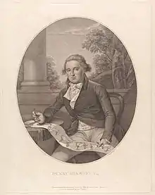 Henry William Bunbury (1 July 1750 – 7 May 1811)[1] was an English caricaturist. The second son of Sir William Bunbury, 5th Baronet (see Bunbury baronets), of Mildenhall, Suffolk, he came of an old Norman family. He was educated at Westminster School and St Catharine's College, Cambridge, and soon showed a talent for drawing, especially for humorous subjects.[2] He temporarily left Cambridge to embark on a tour of Europe, during which time he may have studied in Rome; he returned to school in 1771 but is not known to have completed a degree.[1] His European travels inspired a series of caricatures mocking foreigners, notably his La Cuisine de la Poste, exhibited at the Royal Academy in 1770.[1]
