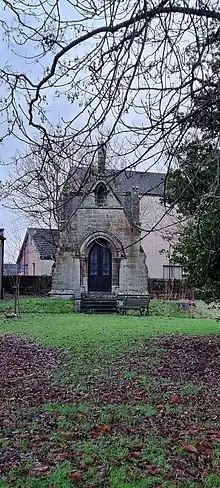 The Earl is buried in a standalone memorial burial chapel (built 1857) to the east of the church of St John Cantius and St Nicholas Catholic Church in Broxburn.[3]