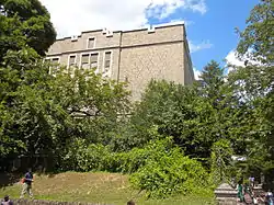 The building was designed by Irwin T. Catharine and built between 1926 and 1927. It is a three-story, nine-bay, brick building which sits on a raised basement. It was designed in the Late Gothic Revival-style, and features a projecting stone entryway with Tudor arched opening, stone surrounds, and a crenelated parapet.[2]