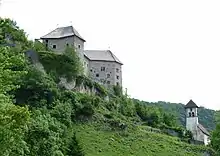 Henry I Kőszegi, a significant figure of the era of so-called "feudal anarchy", was killed in the Battle of Föveny in September 1274. His power and wealth in Western Transdanubia were largely inherited by his two elder sons, Nicholas and Ivan, who divided their heirdom and the most valuable domains among themselves in 1279. Henry was excluded from the contract, only his wine growers were mentioned, to whom they were assigned certain vineyards in Moson and Pozsony counties. Historians János Karácsonyi and Attila Zsoldos considered Henry was granted lands in Slavonia from his brothers sometime before 1279, during an unequal sharing; his first lands laid in Varaždin County, the northwestern part of the province. There, it is presumable, he owned the castles of the late "Farkas of Zagorje" from the beginning, including Krapina (Korpona). Subsequently, the forts of Belec, Kostel, Vrbovec (Orbolc) and Oštrc (Oszterc) also belonged to his branch's property, but the time and circumstances of their acquisition are unknown. From these lands and castles on the southwestern corner of the kingdom, Henry expanded his influence over the territory, which was ruled by Joachim Gutkeled prior to that, between the rivers Drava and Sava (called Slavonia superior, "Upper Slavonia"), in the upcoming decades, and was considered the most powerful lord in the region by the extinction of the Árpád dynasty in 1301.[6] For instance, he acquired the castles of Susica (later Szentgyörgy, present-day Đurđevac in Croatia) and Koprivnica (Kapronca) in Križevci County.[7] During their family contract, Nicholas and Ivan did not renounce the possibility of their expansion into Slavonia, they both possessed landholdings and castles in the province too (for instance, Plošćica was owned by Ivan, which was later, however, acquired by Henry). In their agreement at Dubica on 20 April 1278, the Kőszegis and the Babonići divided the spheres of interest in Slavonia between each other. Henry and his brothers renounced territorial claims from all areas south of the river Sava (Slavonia inferior, "Lower Slavonia") in favor of Stephen Babonić and his clan, who acknowledged the Kőszegis' power north of the river at the same time.[8]