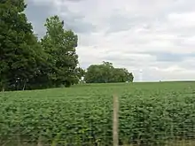 Photo of some farm land, but not of the listed area with the three contributing buildings