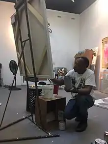 Taylor's important exhibitions include a mid-career retrospective at MoMA PS1,[14] along with solo exhibitions at the Studio Museum in Harlem, Artpace, and the Santa Monica Museum of Art, along with group exhibitions at the Whitney Museum of American Art, the Corcoran Gallery of Art, the Museum of Contemporary Art, Los Angeles, the Hammer Museum, the Carnegie Museum of Art, the Rubell Museum, and the Bruce High Quality Foundation.[22][23][24][25][26][27] Taylor is represented by Blum & Poe Gallery in Los Angeles and Feur Mesler gallery in New York.[28][29]