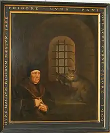 The 2004 Oxford DNB states that his support for Henry Tudor began before 1483, and that he probably participated in Buckingham's Rebellion. No evidentiary support is available for either statement. The entry continues, "Family legend has it that he was imprisoned and interrogated by Richard III himself."[6] However, Richard III is never named by the Wyatt family. The assumption is derived from two instances of the word "tyrant" applied to Wyatt's captor, a term which in the 16th century could refer to "Anyone who acts in a cruel, violent, or wicked manner".[7] More likely it referred to the Scottish baron postulated by Conway (above). Records show that Richard III never set foot in Scotland during his reign.[8]