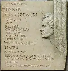 Henryk Tomaszewski aka Heinrich Karl Koenig (1919–2001) was a mime artist and theatre director, born in Poznań, Poland. He settled in Cracow in 1945 to study theatre after the end of World War II during which he studied at Iwo Gall's Theatre Studio from 1945 to 1947 and ballet under Feliks Parnell. Tomaszewski left Parnell's company in 1949 and resettled in Wrocław, where he worked as a ballet dancer in the Opera and already there began to develop his own concept of mime.