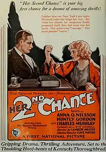 Her Second Chance is a 1926 American silent drama film directed by Lambert Hillyer and starring Anna Q. Nilsson. It was produced by First National Pictures and distributed through Vitagraph Company of America.[1][2]