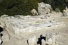 The Heraion of Perachora (Greek: Ηραίο Περαχώρας) is a sanctuary of the goddess Hera situated in a small cove of the Corinthian gulf at the end of the Perachora peninsula. In addition to a temple of Hera of unusual construction and antiquity, the remains of a number of other structures have also been found, including an L-shaped stoa, a large cistern, dining rooms, and a second potential temple. The Sanctuary of Hera at Perachora is 14.2 kilometres (8.8 mi) north-northwest of Corinth and 75.9 kilometres (47.2 mi) west of Athens. Although there is debate between Argos, Megara and Corinth, the sanctuary was probably under the control of Corinth, as it faced the harbors of that powerful city across the Corinthian gulf. Cult activity at the site continued from perhaps the 9th century BCE to 146 BCE, when the Roman general Mummius sacked Corinth during the war with the Achaean League. In the Roman period, domestic structures were built on the site, indicating that the area was no longer a sanctuary. This site is significant for the study of the origins of Greek temple architecture and rural cults.