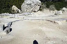 Around 30 metres (98 ft) east of the cistern, was a pool about 2 metres (7 ft) deep thought to perhaps have a sacred function within the cult. Significant numbers of mesomphalic phialai (libation vessels) were found within this structure. This structure is now backfilled and its exact location unknown.